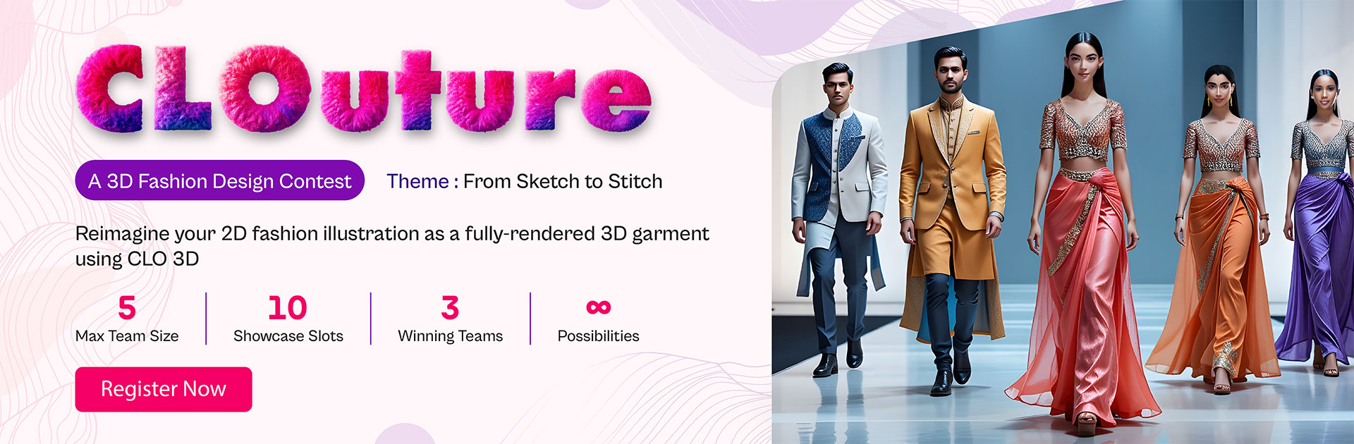 CLOuture is DreamZone's exclusive 3D fashion design contest for Dzian fashion students ready to take their creativity digital. Using CLO 3D, the industry's top garment simulation tool, participants will compete to create stunning, tech-integrated fashion pieces.